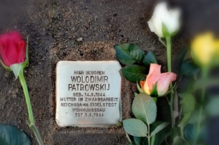 Ein Stein erinnert an Wolodimir Patrowskij und liegt an der Ecke Redingskamp/ Alpenrosenweg.