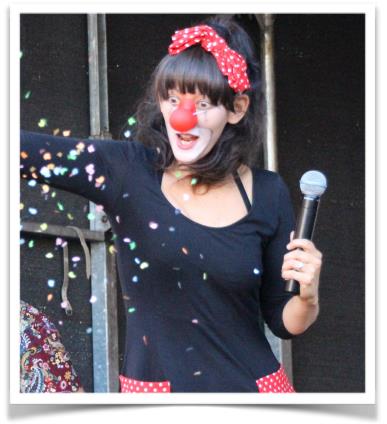Mit einem Clown macht das richtig Spaß. Danach verteilt sie Obst an ihre kleinen und großen Helfer.